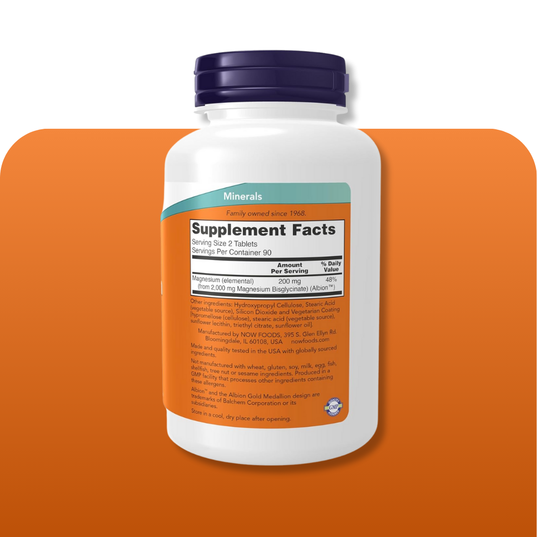 Magnesium glycinate is a chelated form of magnesium, bound to the amino acid glycine. This form is known for superior absorption compared with other magnesium salts and is less likely to cause digestive discomfort. Magnesium plays a critical role in muscle contraction, nerve signaling, energy metabolism, and maintaining bone density.